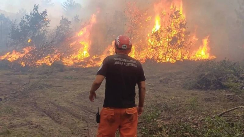 Yangına 5 helikopter, çok sayıda arazöz ve itfaiye ekibiyle müdahale ediliyor. Özellikle sarp arazide görev yapan ekipler, alevlere karşı zor şartlar altında mücadele ediyor. Bazı bölgelerde yangın kısmen kontrol altına alındı; soğutma çalışmaları ise sürüyor.