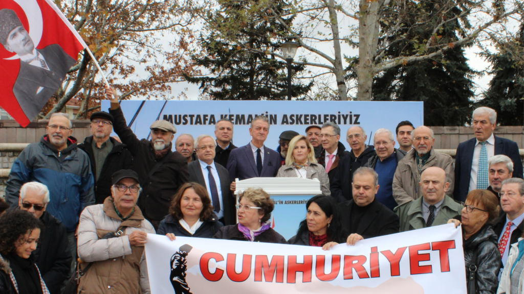 Emekli askerler ve vatandaşlar, Kara Harp Okulu’ndaki mezuniyet töreni sonrasında “Mustafa Kemal’in askerleriyiz” sözleriyle kutlama yapan 5 teğmenin ihraç istemiyle Yüksek Disiplin Kurulu’na sevk edilmesine tepki gösterdi. Ankara Anıtpark’taki eyleme katılan CHP Genel Başkan Yardımcısı Yankı Bağcıoğlu ve Atatürkçü Düşünce Derneği Başkanı Hüsnü Bozkurt açıklama yaptı.