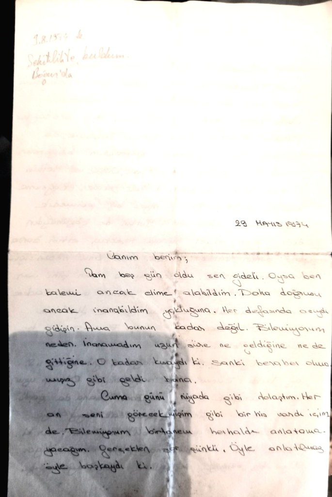 hafif bir rüzgar, üstünde yazılar olan bazı kağıtları ayağına getirdi. Alıp okuduğunda bunun 20 Temmuzdan hemen önce Kıbrıs’a özel bir görevle gönderildiğini sandığı bir kişiye yazıldığını anladı. Yazanın ismi vardı ama alıcının ismi yoktu. Mektubu yazan genç bir kadındı. Mektup+