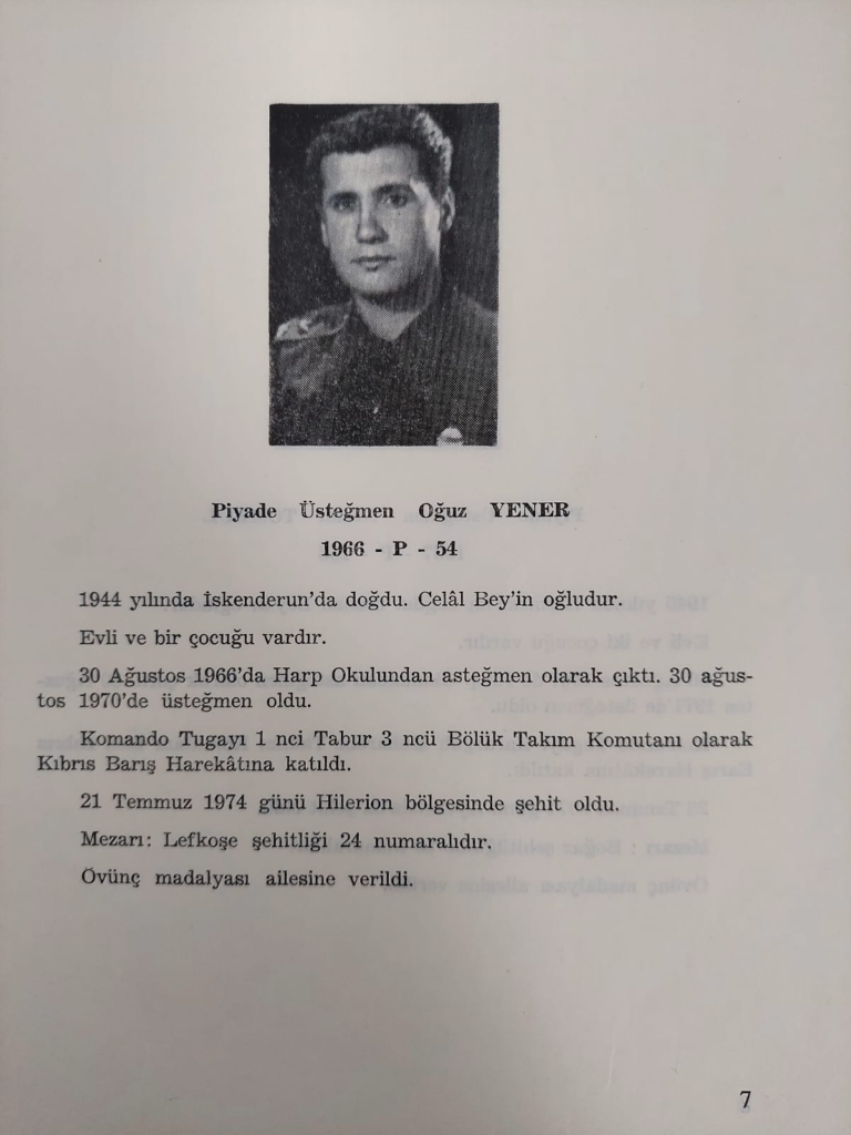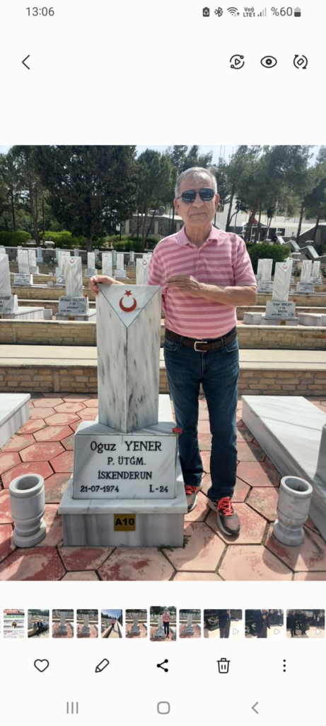 3 Ağustos 1974’de, savaş içinde alel acele oluşturulan BOĞAZ ŞEHİTLİĞİ’NDE yatan çocukluk arkadaşı Şht. Üsteğmen Oğuz Yener’in mezarını ziyaret etmek için şehitliğe gitti. 20 Temmuzu 21 Temmuza bağlayan gece Rum 31. Komando taburunun işgal + Türker Yalçın şimdiki şehitlikte