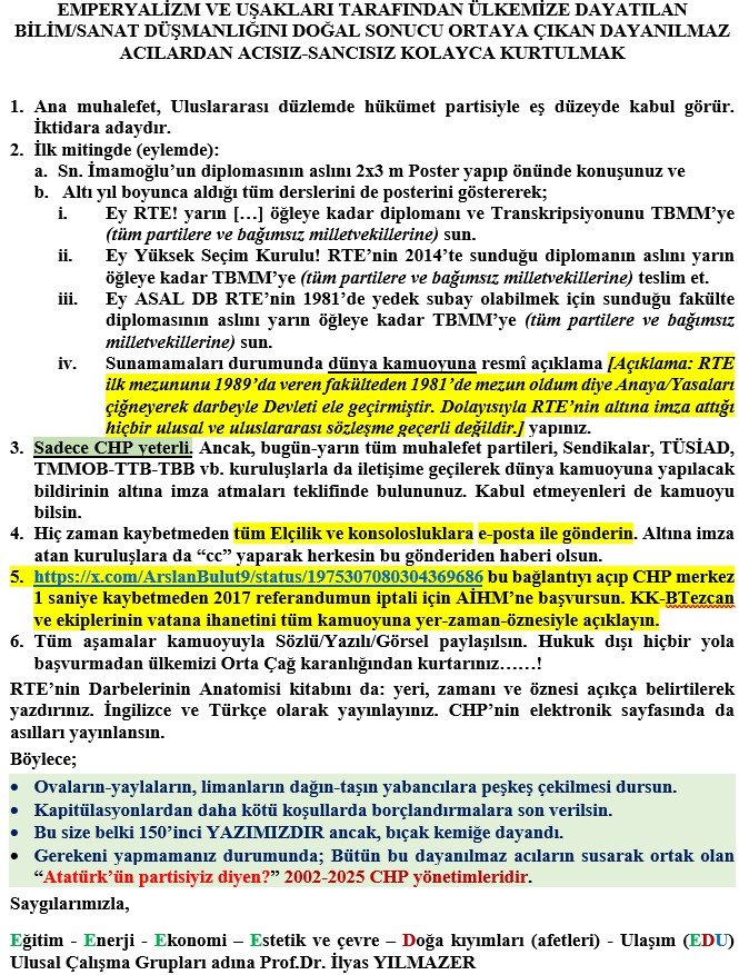 Sayın Nurullah Efe Ankut’un yazısı aşağıdadır. Belki anlar ve EK I’in veya benzeri bir yaklaşımın gereğini yaparsınız. Ülkemiz de RTE-Cuntasından kurtulur.